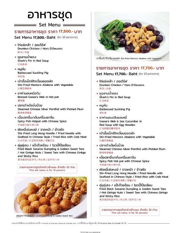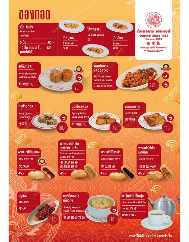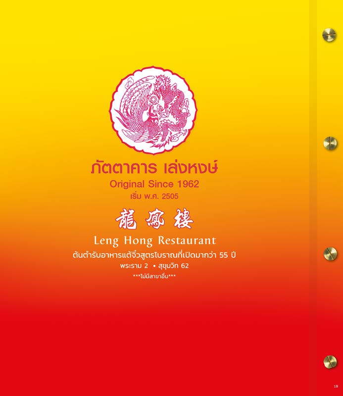 ภูมิใจเสนอ เมนูอาหารสุดพิเศษ โดยรวบรวมเมนูจานเด็ดที่ขึ้นชื่อของ ภัตตาคาร เล่งหงษ์